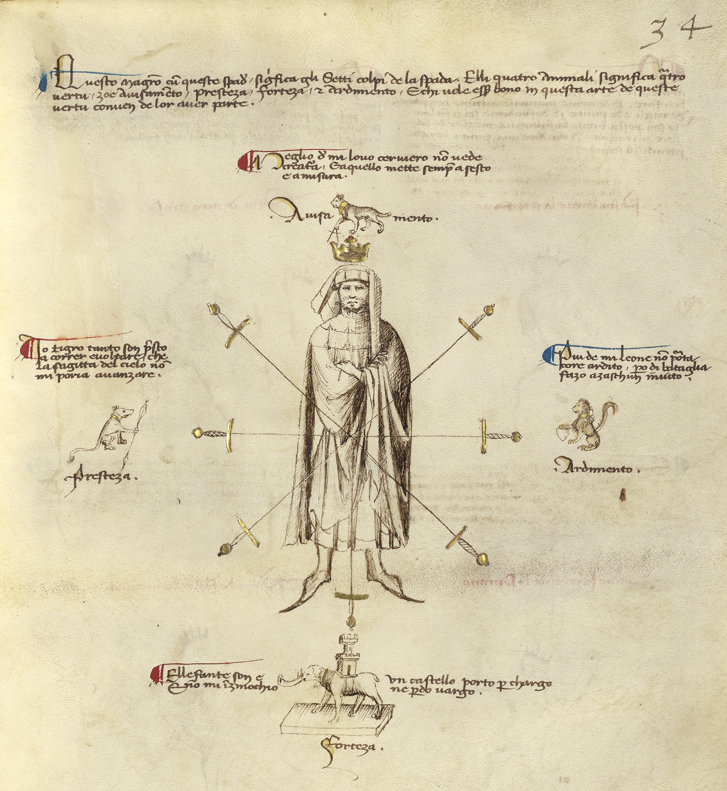 Nous avons choisi d’utiliser cette représentation théorique du savoir de Fiore dei Liberi pour notre nom de club sportif. En effet, Fiore est un des premiers grands maîtres d’armes à avoir écrit ses connaissances afin de les partager.