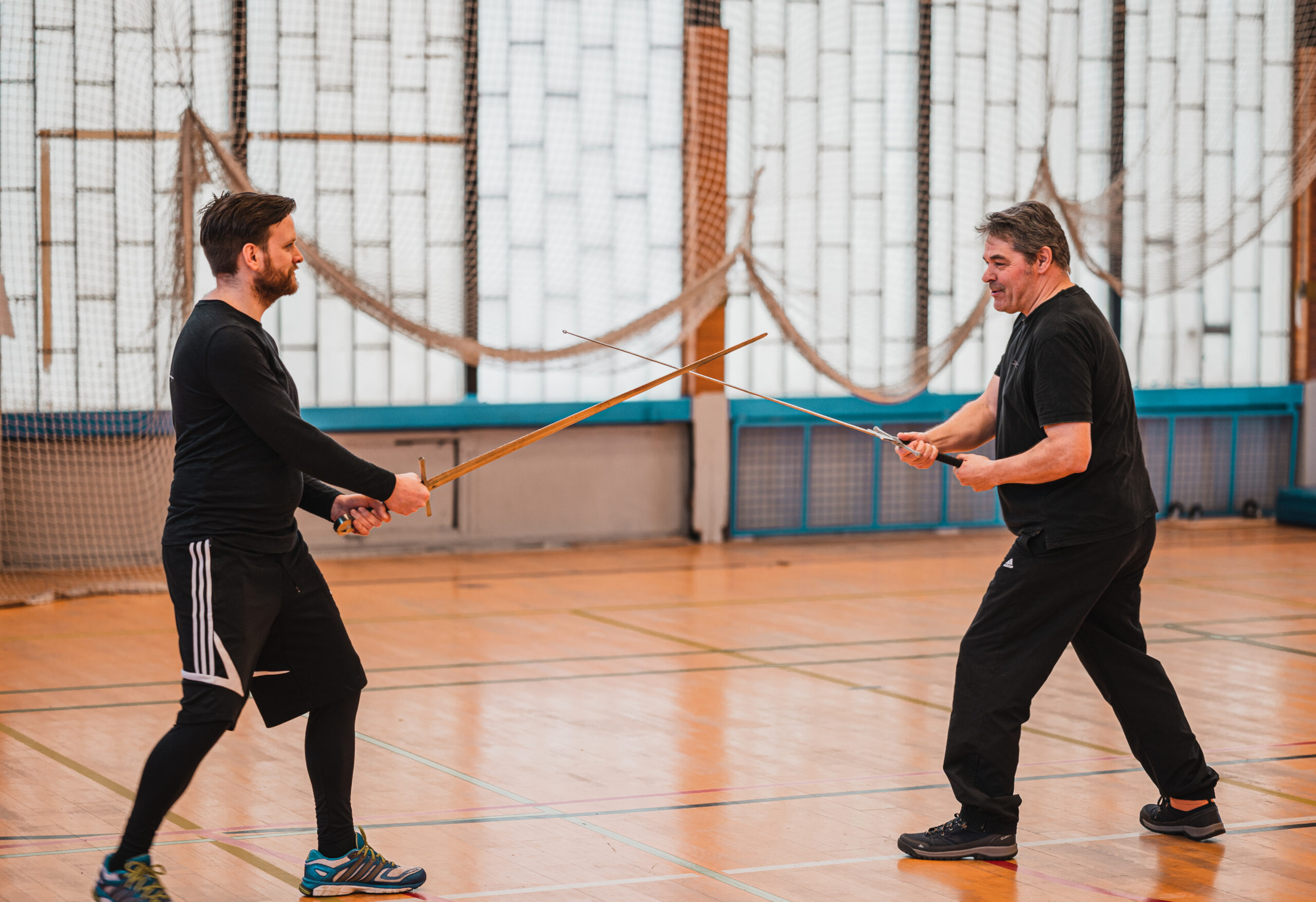 Un cours particulier s’est déroulé le samedi 5 février 2022. En effet, un adepte des Arts Martiaux Historique Européen nous a contacté plus tôt pour nous prévenir de son envie de rejoindre notre salle d’entrainement et d’y amener des amis, ainsi qu’un certain Matt Galas.